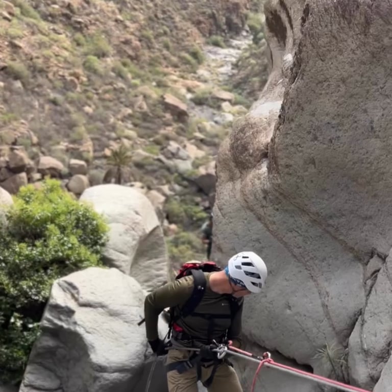 Located in the arid landscapes of Arico, Tenerife, Canyon Piedra Bermeja is a thrilling dry canyoning route perfect for adrenaline seekers. With impressive rock formations, steep rappels, and technical descents, this canyon offers an exciting adventure in a rugged volcanic setting.